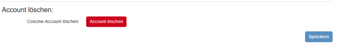 Im Abschnitt Account löschen können Sie Ihren Coscine-Account vollständig löschen. Beachten Sie bitte, dass dies nur möglich ist, wenn Sie in keinem Projekt mehr Mitglied sind. Andernfalls müssen Sie die entsprechenden Projekt zunächst eigenständig verlassen. Nach einer erfolgreichen Löschung erhalten Sie eine Bestätigungs-E-Mail. Wenn Sie Coscine in Zukunft erneut nutzen möchten, können Sie sich erneut anmelden.