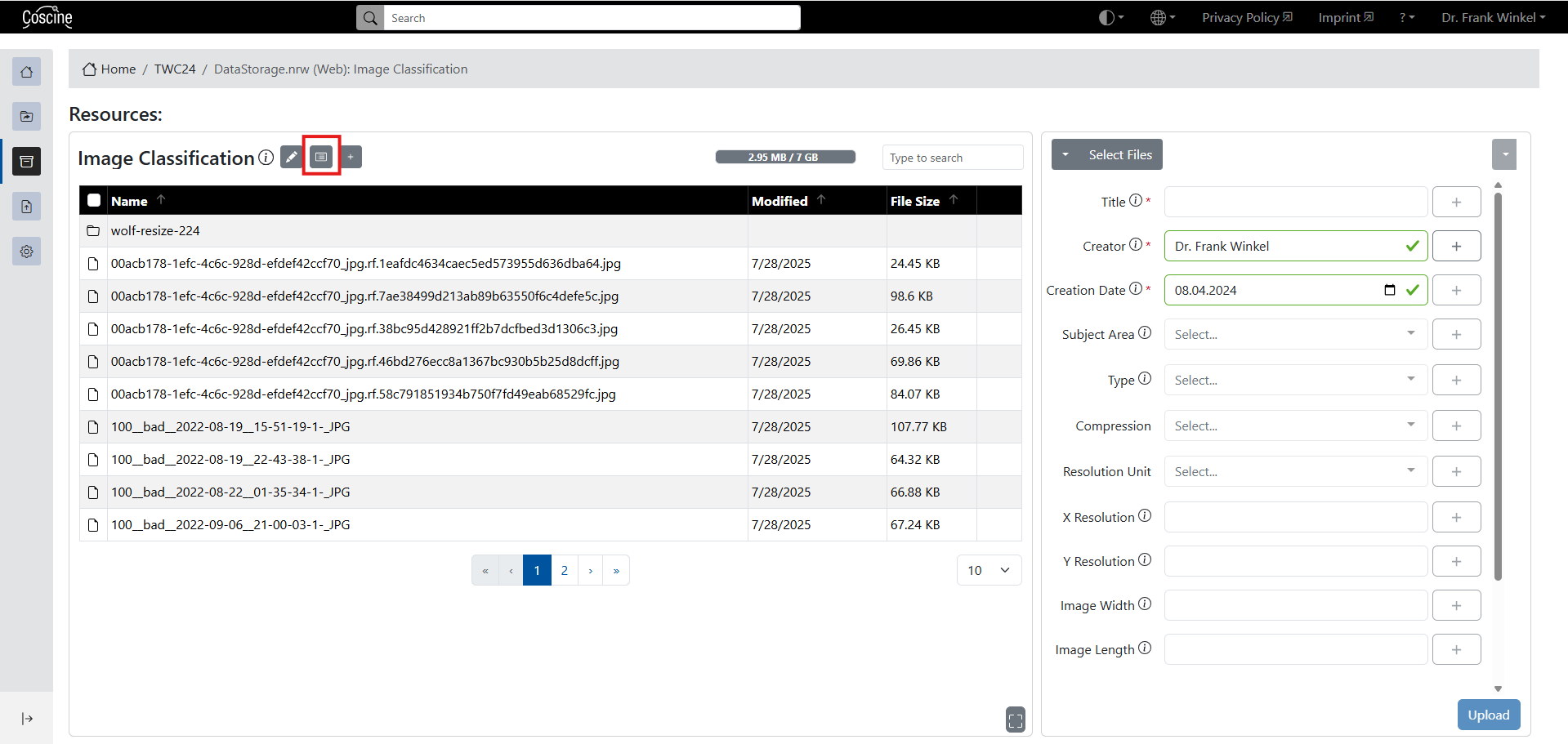 Once a resource is created in Coscine, it can be edited as often as required by the project owners. With the resource configuration, they have the option of directly accessing data of the underlying storage medium, in addition to adjusting the metadata parameters and general resource settings.